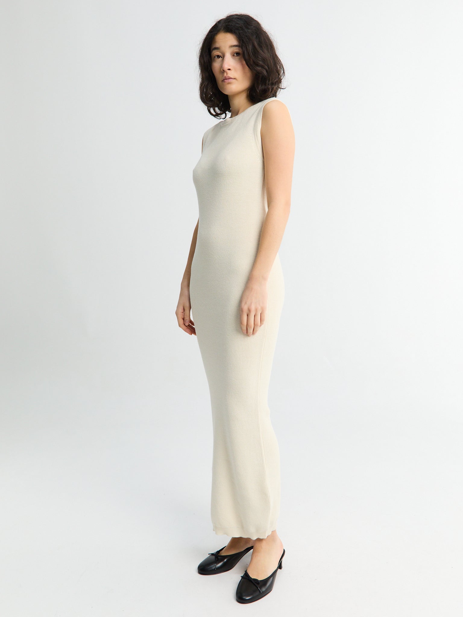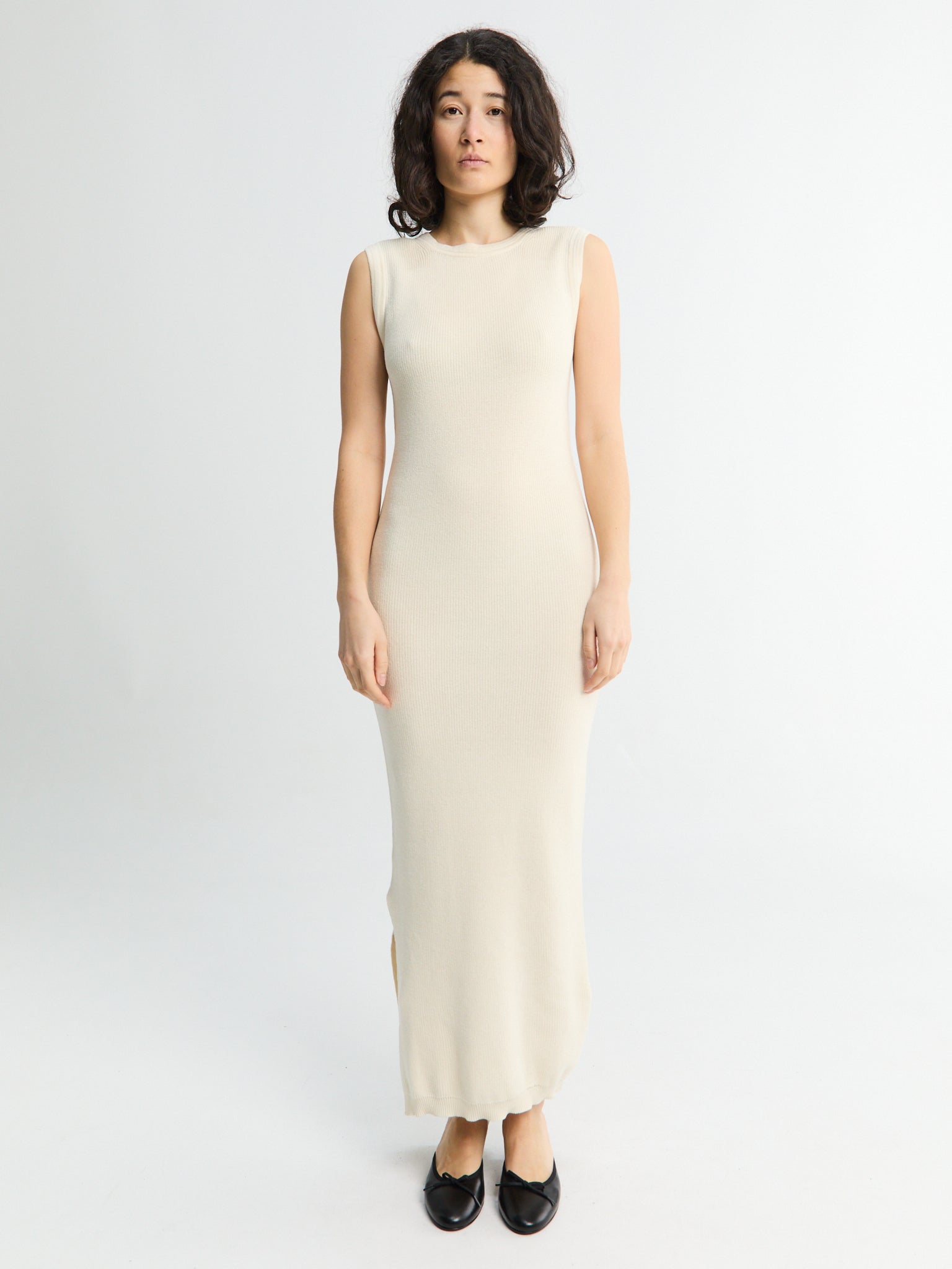 The Esha Dress is cut from a light, crisp organic cotton poplin for a relaxed, straight silhouette. It is detailed with a simple crew neck, side seam pockets, and a keyhole closure at the back. Finished with slits at the hem for ease of movement, its pure ecru color highlights the fabric’s natural quality.