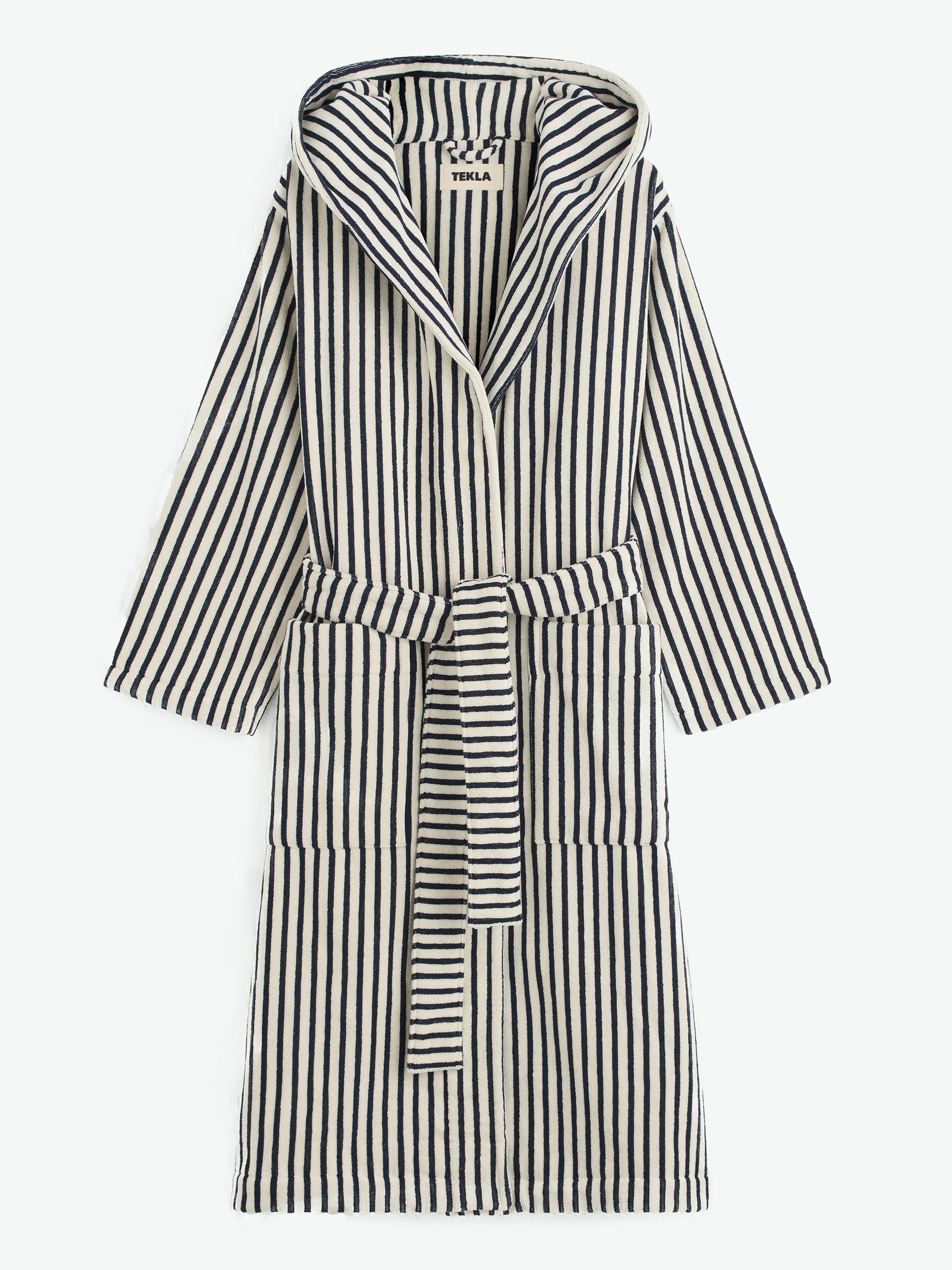Unisex Tekla bathrobe designed for an oversized fit with two front pocket.