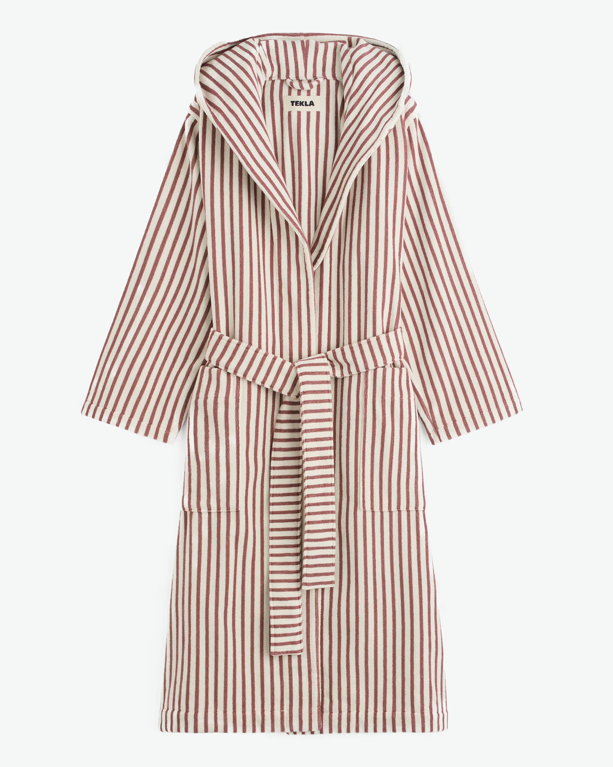 Experience everyday comfort in this organic cotton hooded bathrobe. The heavyweight terry fabric is soft and absorbent, while the relaxed fit suits everyone. Features include a shawl collar, detachable belt, and convenient pockets.