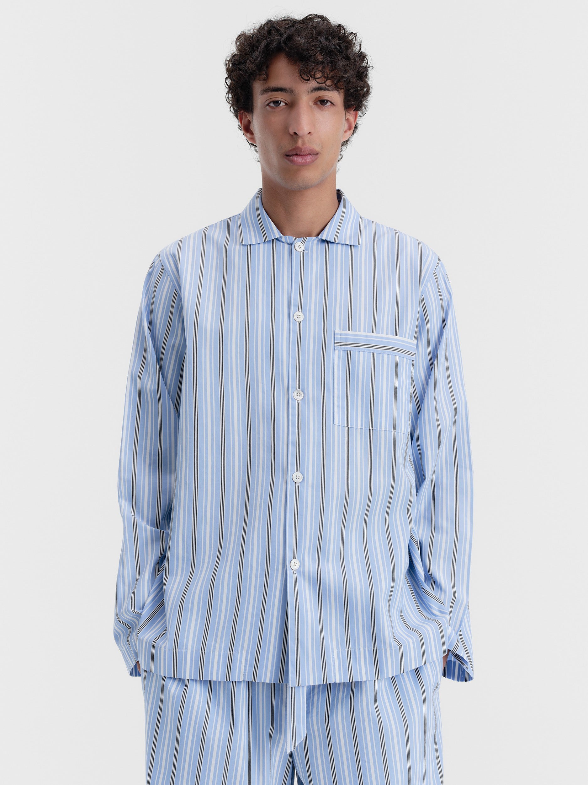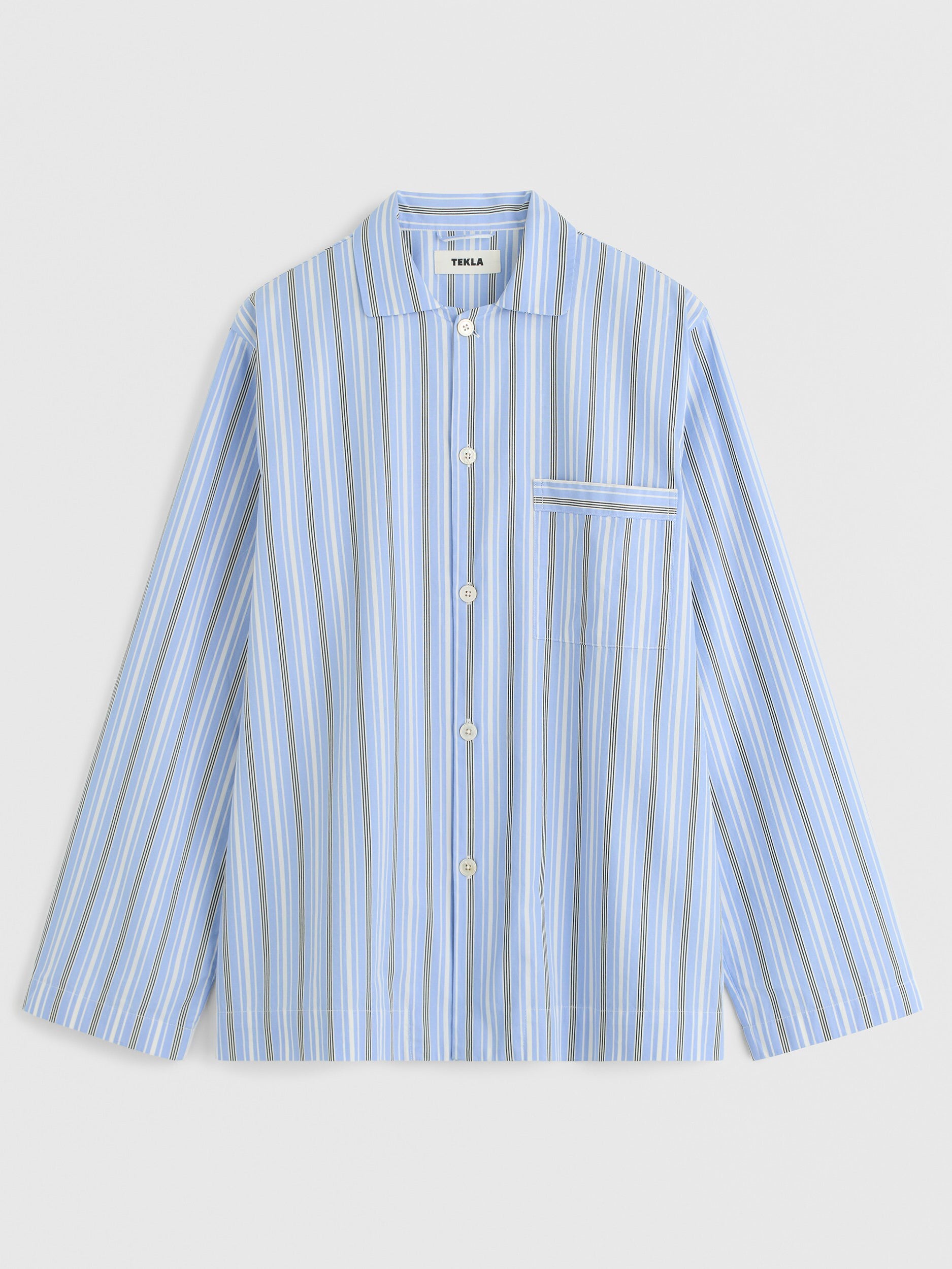 Poplin Pyjamas Long Shirt in Stave Stripes