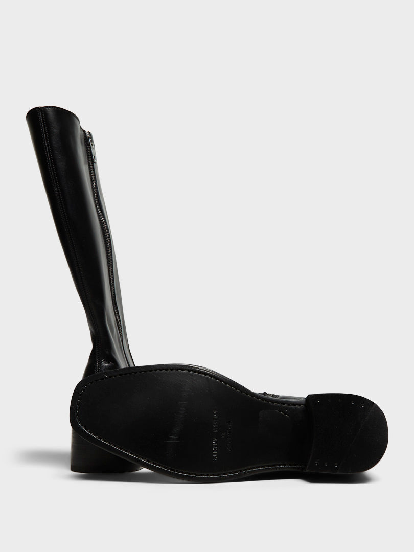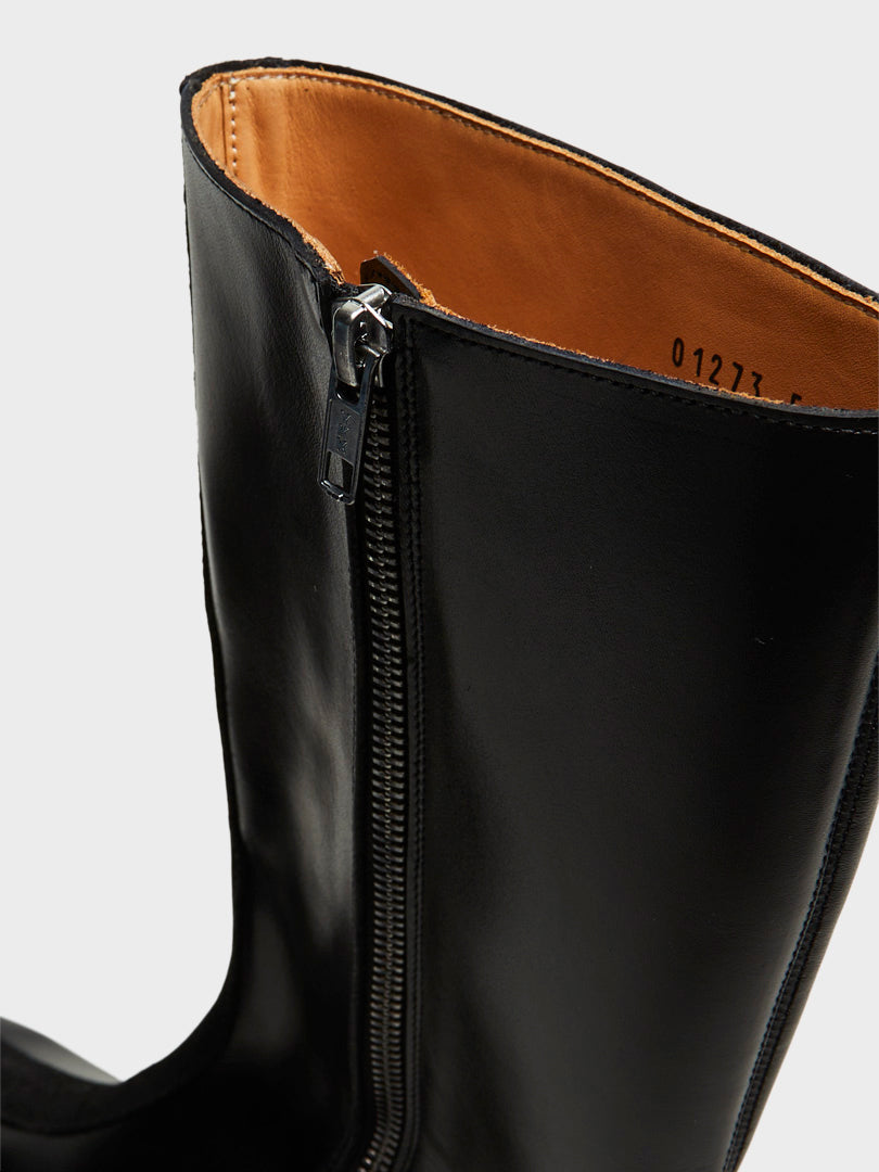 The Pedestrian Bootfeatures a 34 cm shaft, 4.5 cm stacked heel, and Goodyear welt construction for resoling. The stitched leather sole and full-length insole provide durability and support