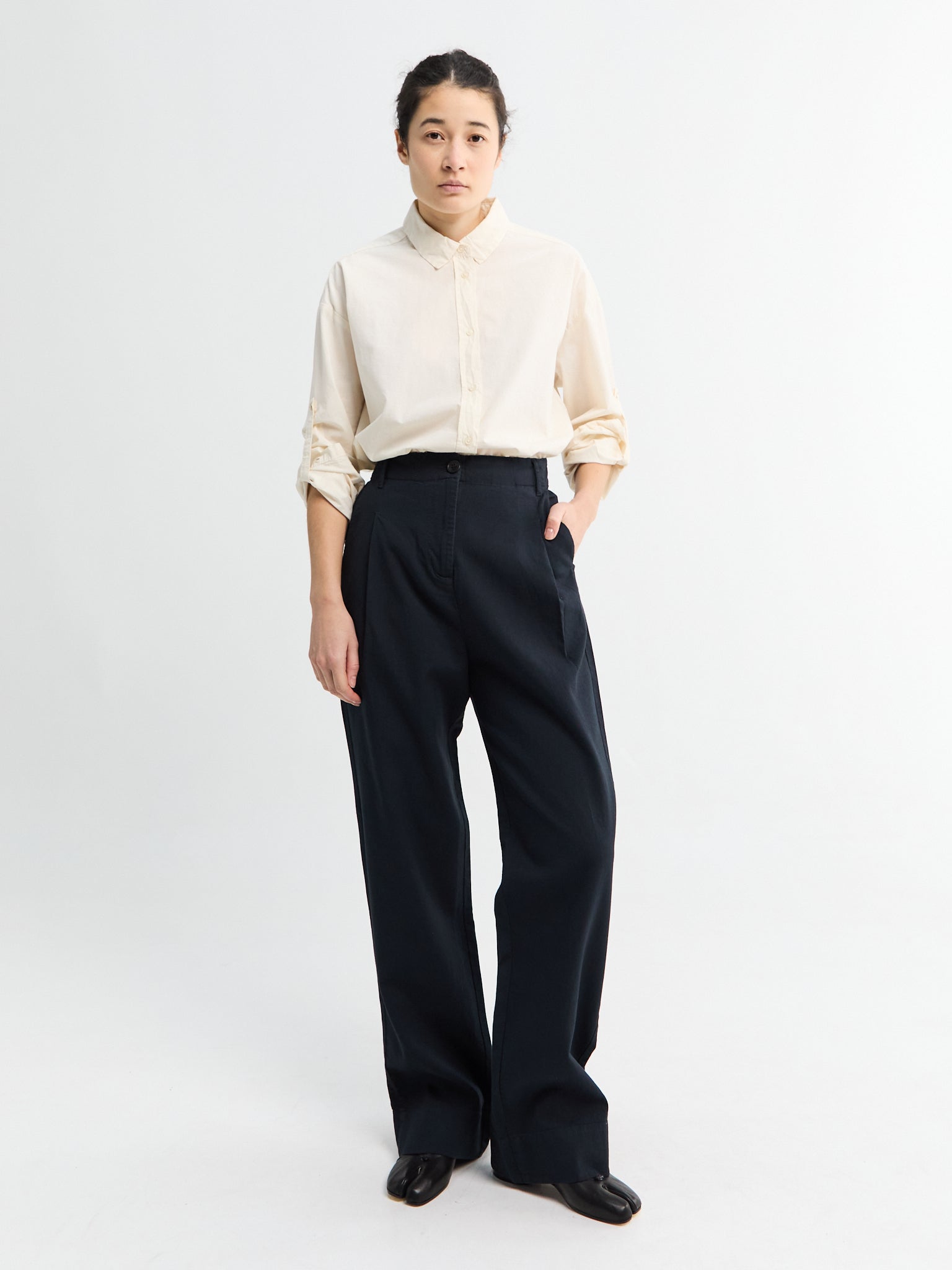 A classic trouser with a straight-leg cut and mid-rise waist. Features a zip fly and practical pockets for everyday wear.