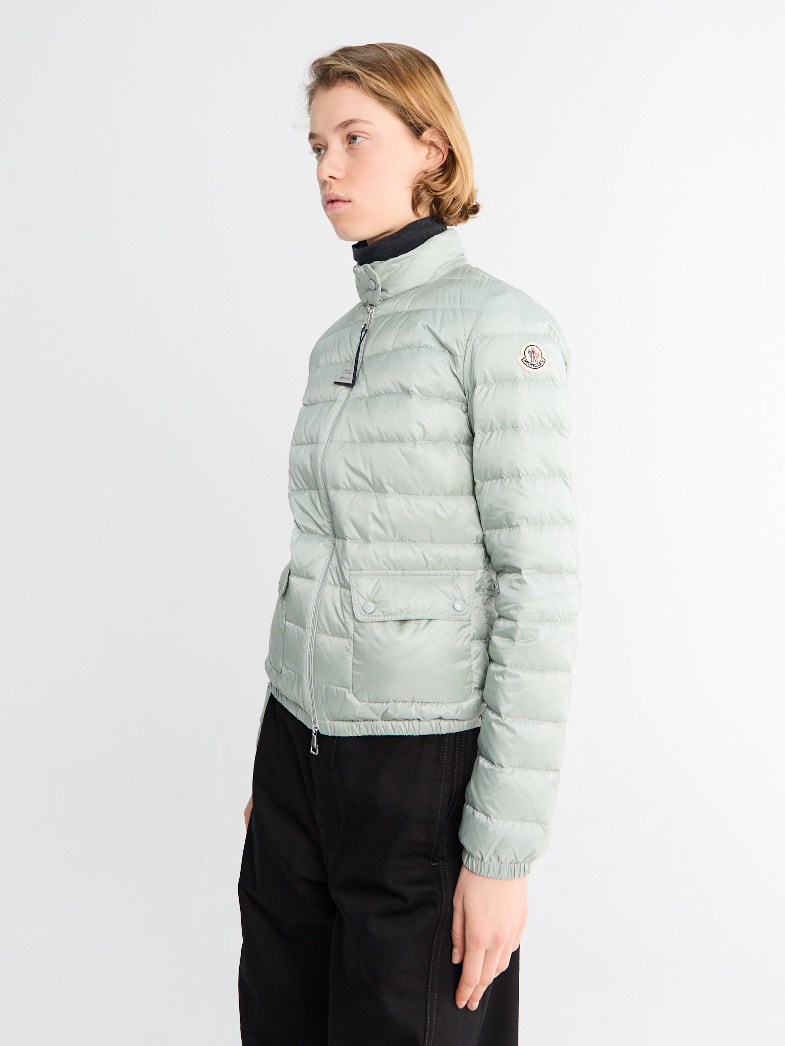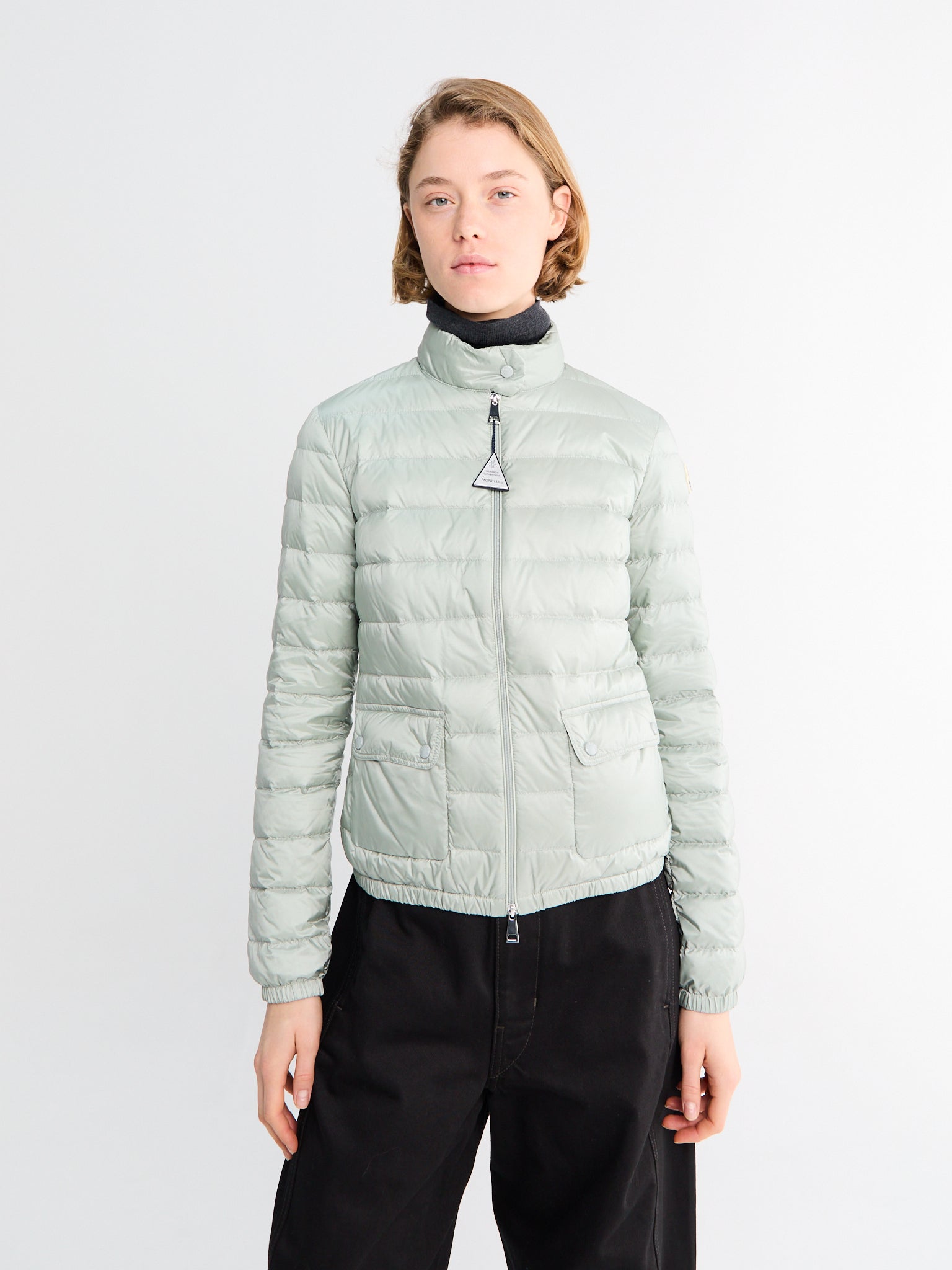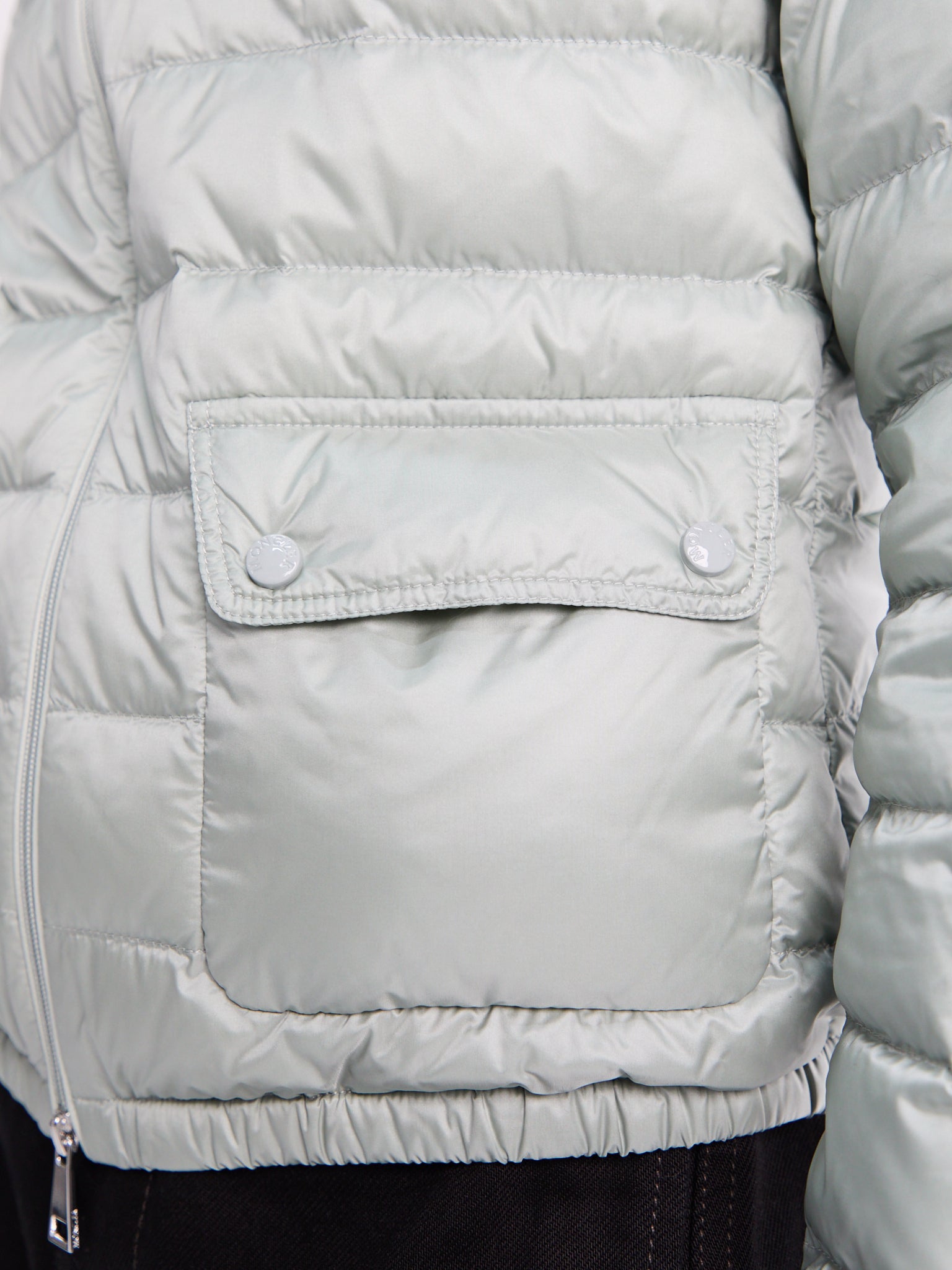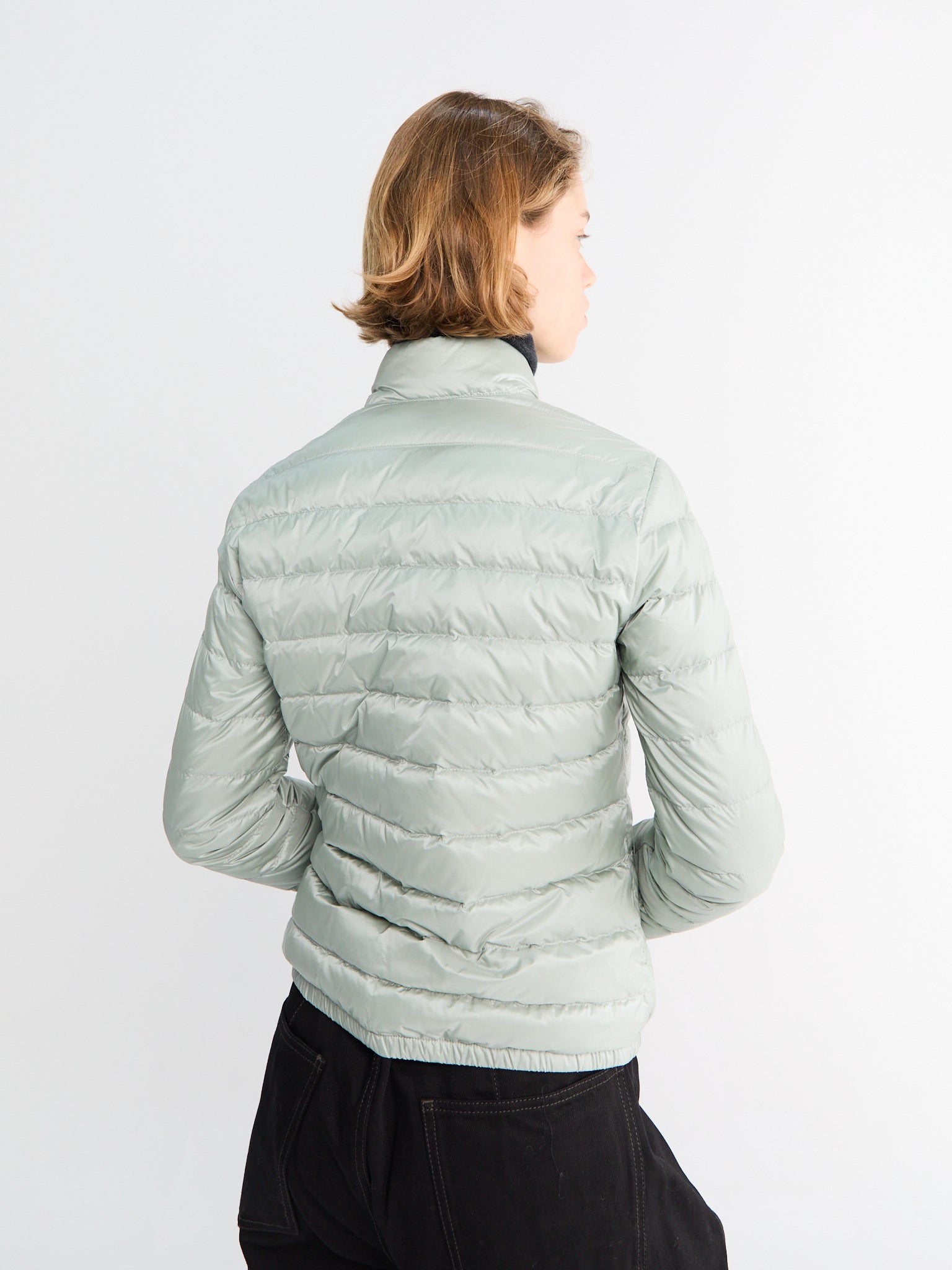 Insulated jacket featuring a medium-height collar, filled with down and feathers for warmth and comfort.