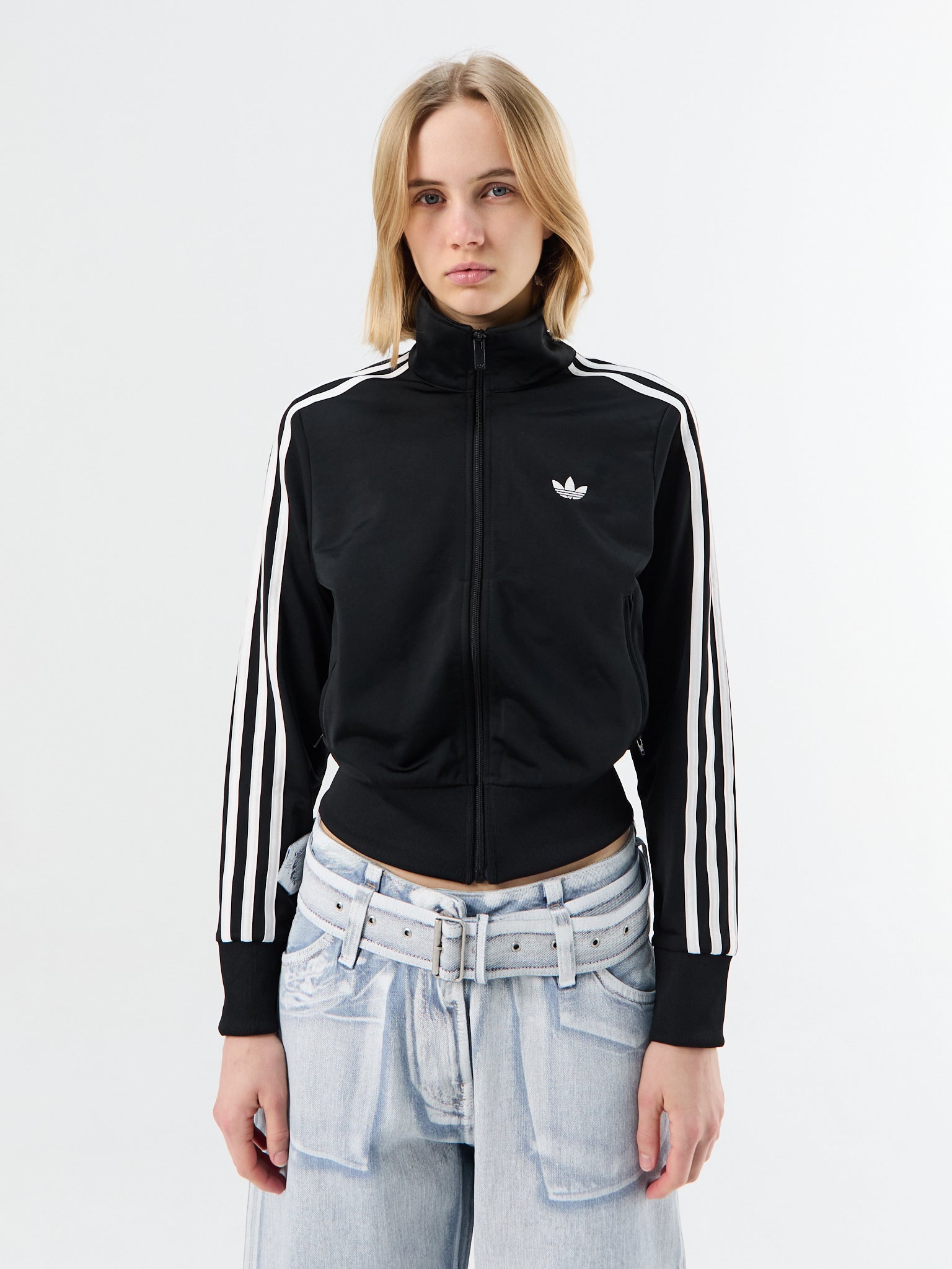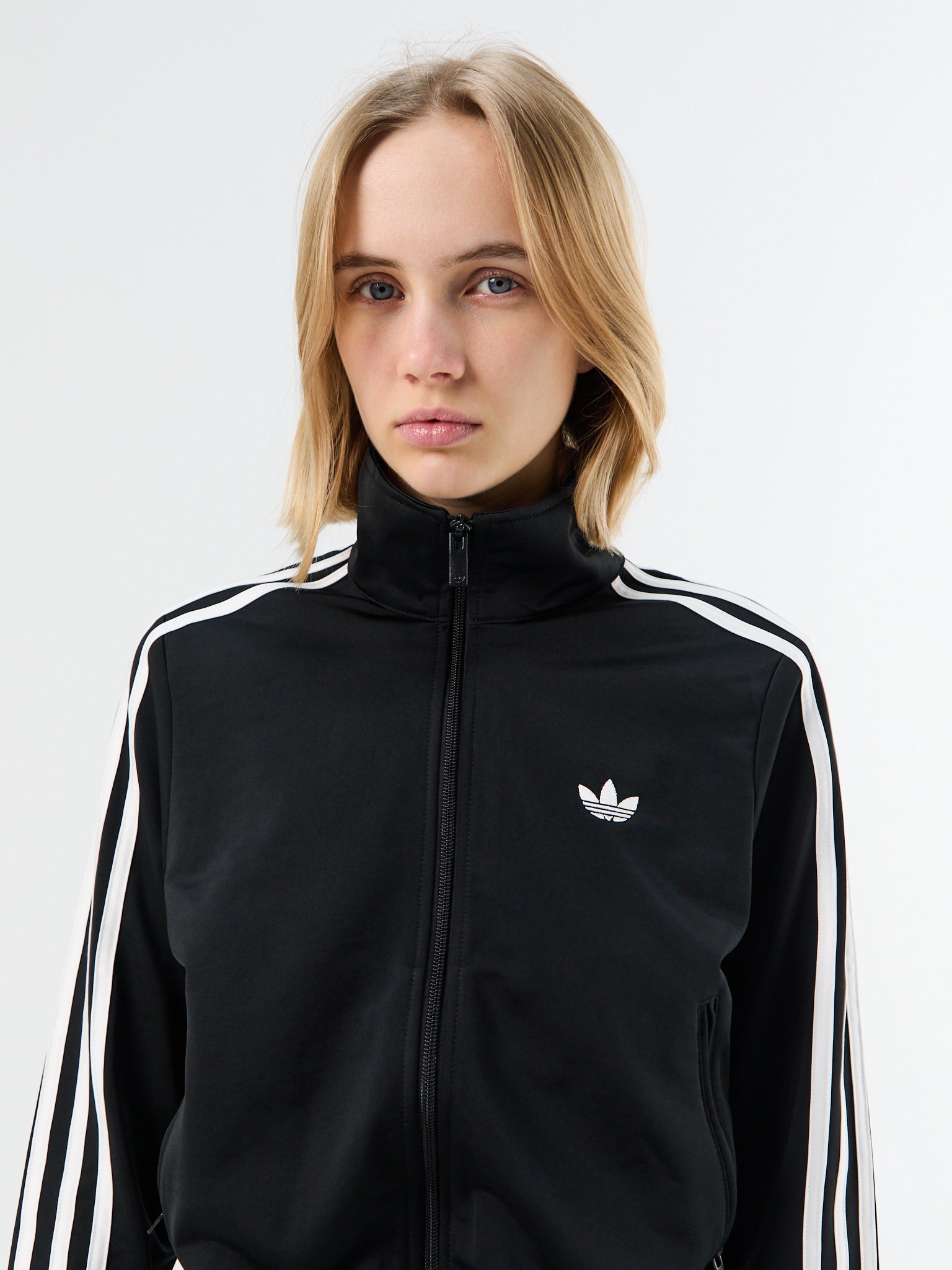 Crafted from smooth, recycled polyester tricot, this classic track top features a signature stand collar and full zip. The silhouette is finished with contrast 3-Stripes for a timeless appeal.