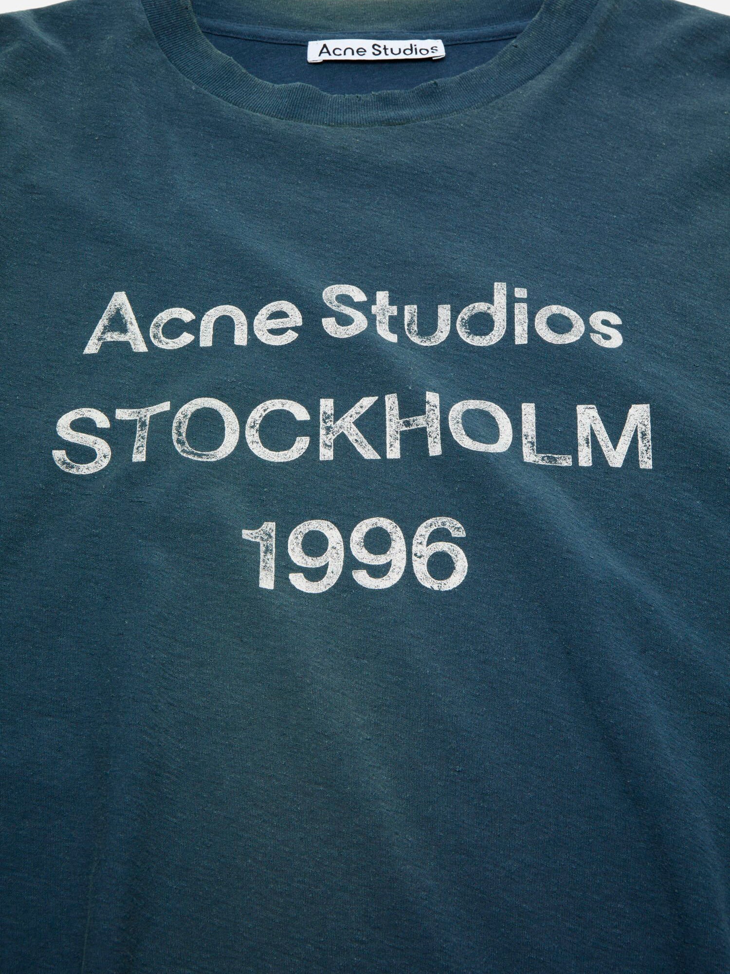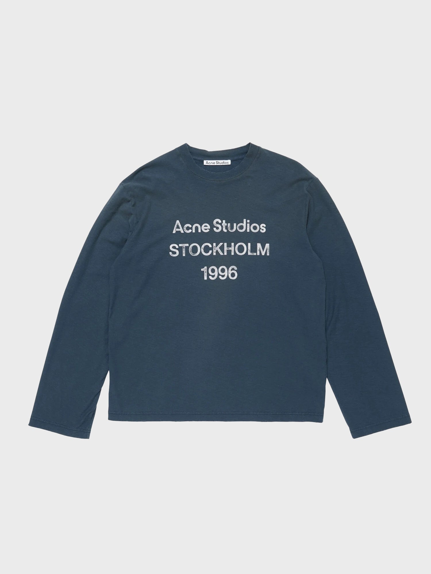 Long sleeve t-shirt is cut to a relaxed unisex fit and hip length. Detailed with an Acne Studios 1996 stamp logo, distressed neckline, cuffs and hem. Crafted from cotton with a sprayed finish