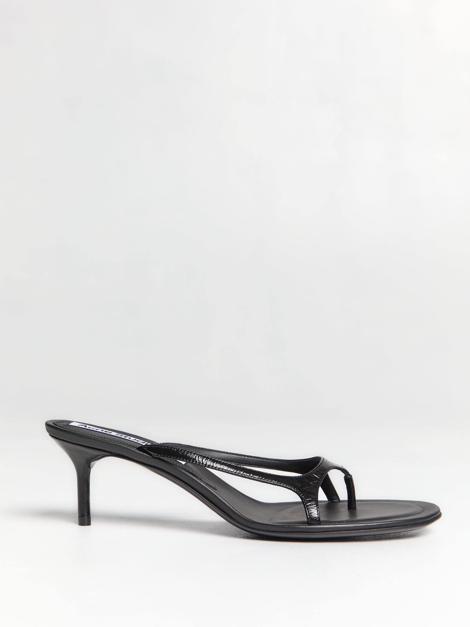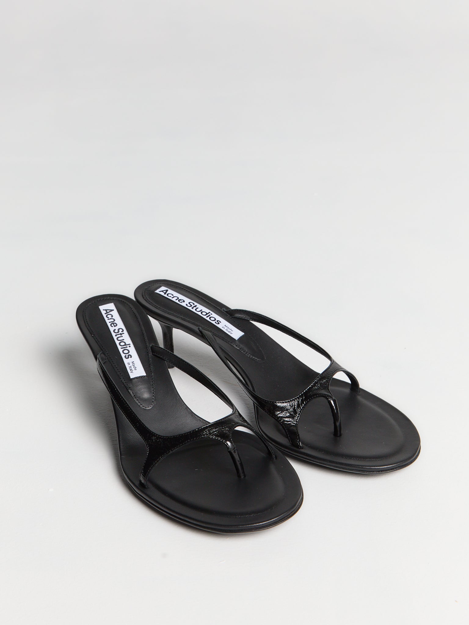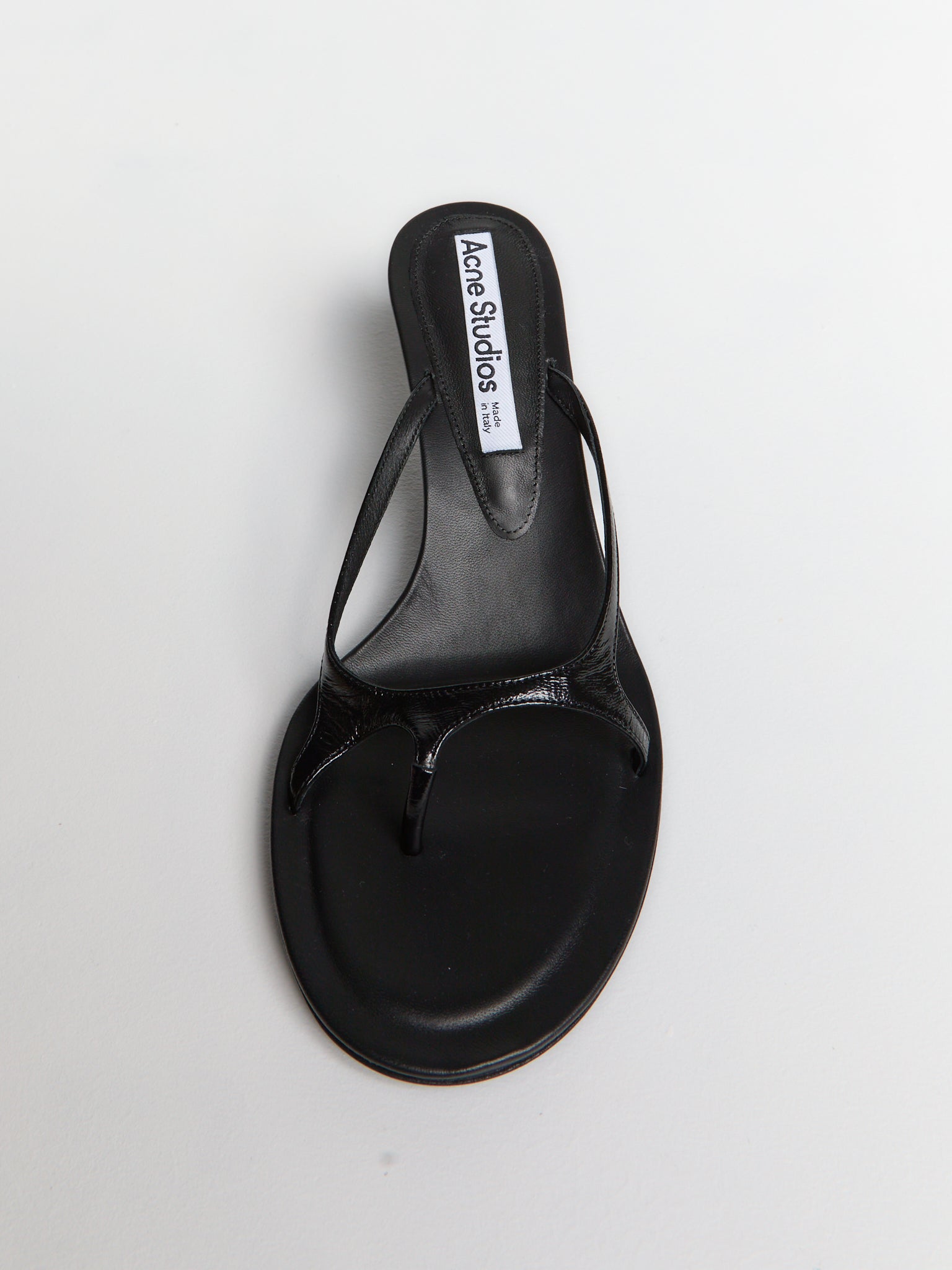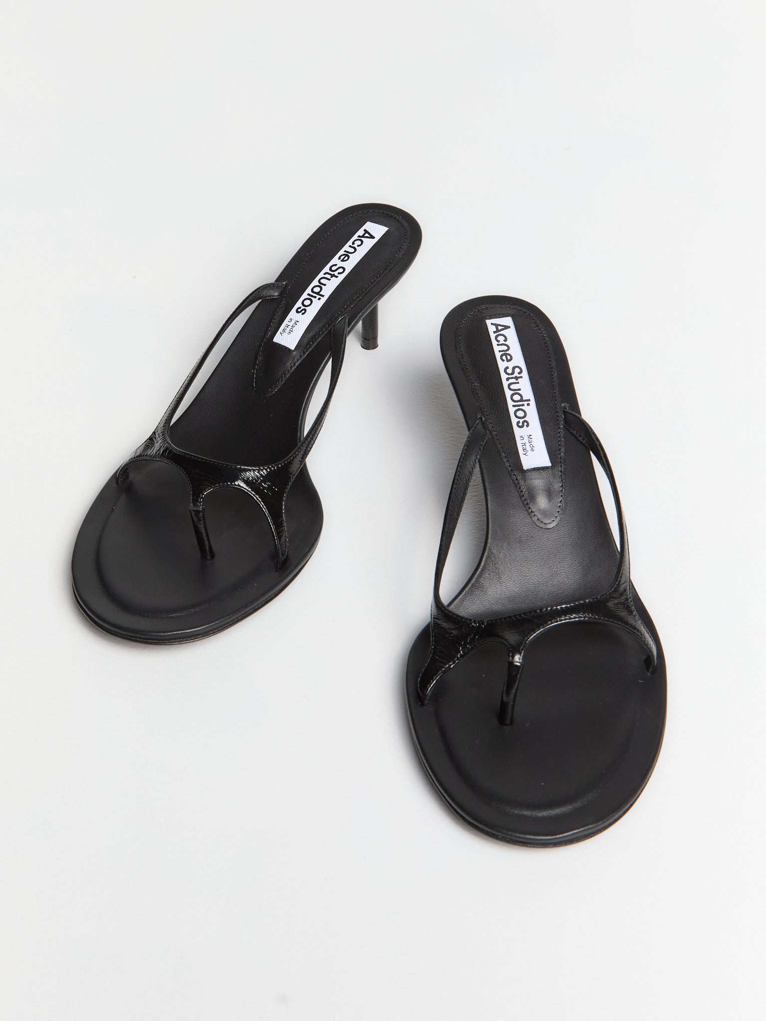 Patent leather sandals with kitten heel and round toe. Features a nappa insole and leather heel for everyday wear.