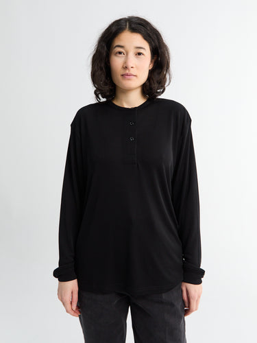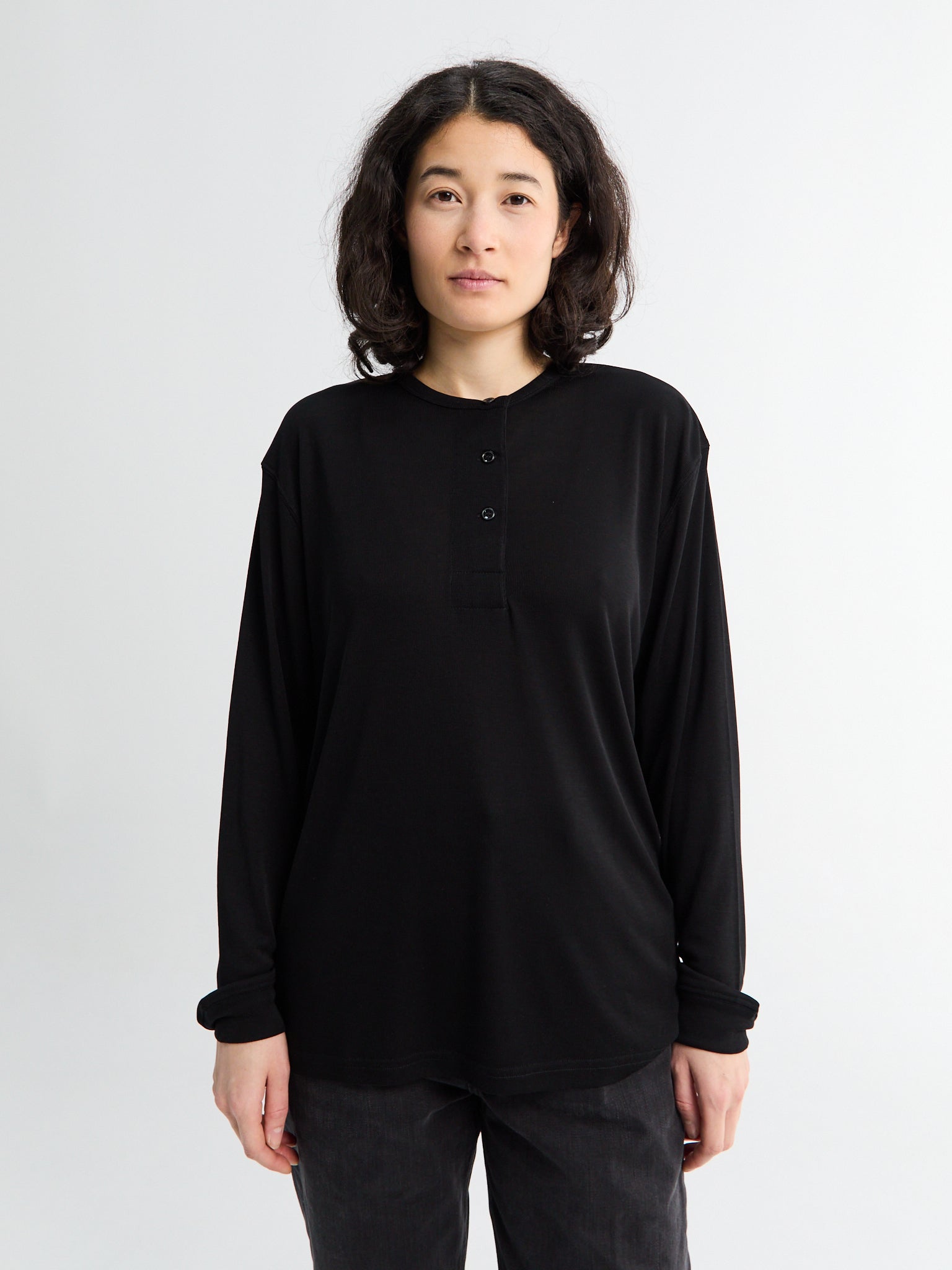 Crafted from soft cotton jersey, this long-sleeve henley offers a clean silhouette and features a classic three-button placket.