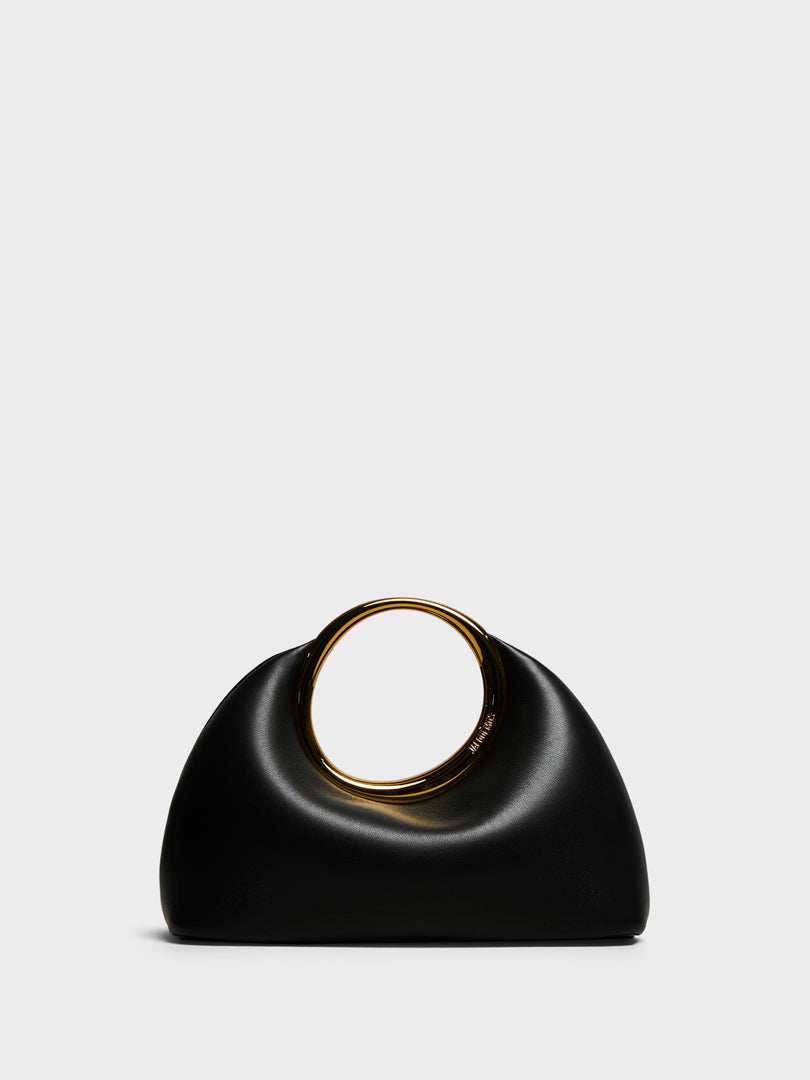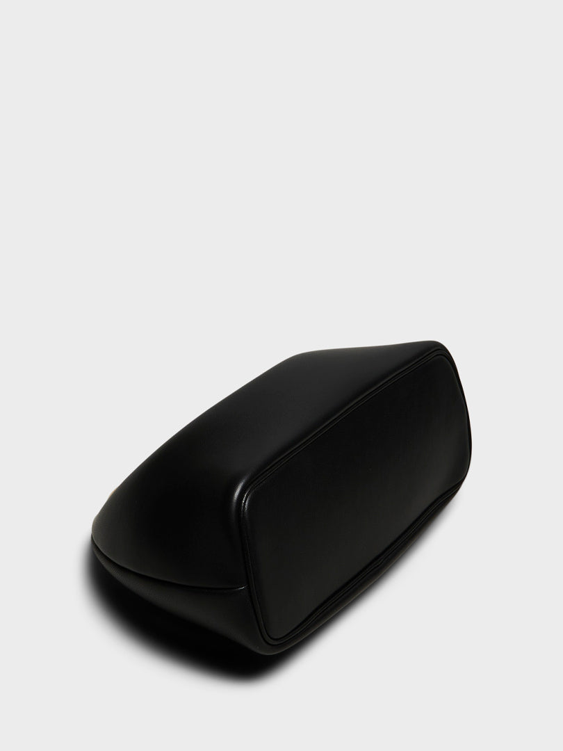 Crafted from supple nappa leather, this handbag features an organic silhouette with an integrated engraved ring handle for effortless carrying. The magnetic closure keeps your essentials secure, while the flat bottom provides stable, practical storage.