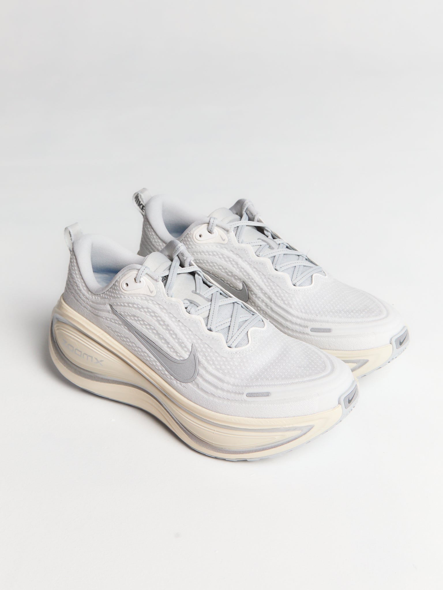 Nike Vomero Plus in Platinum tint, Refleect Silver, Grey Fog, Iron Grey and Metallic Silver