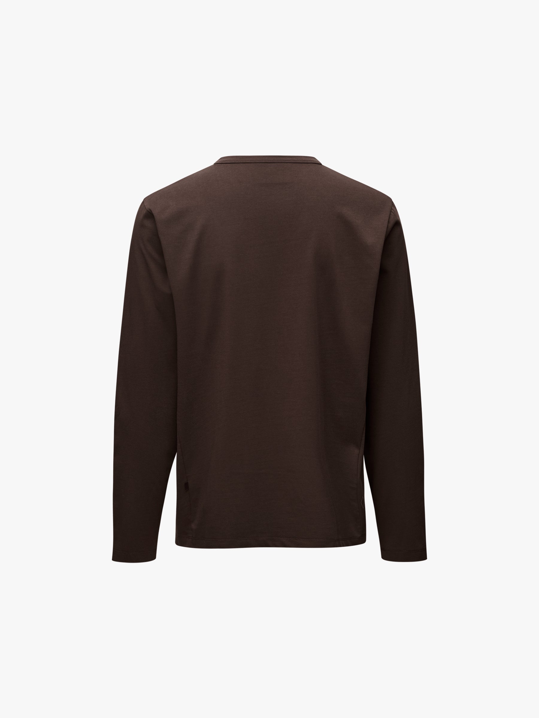 A relaxed long sleeve tee that combines casual style with technical performance. Made from organic cotton and Ecomade Coolmax, it offers moisture-wicking comfort. Twin-needle stitching strengthens the hem and cuffs, and a reflective logo adds a subtle finishing touch.