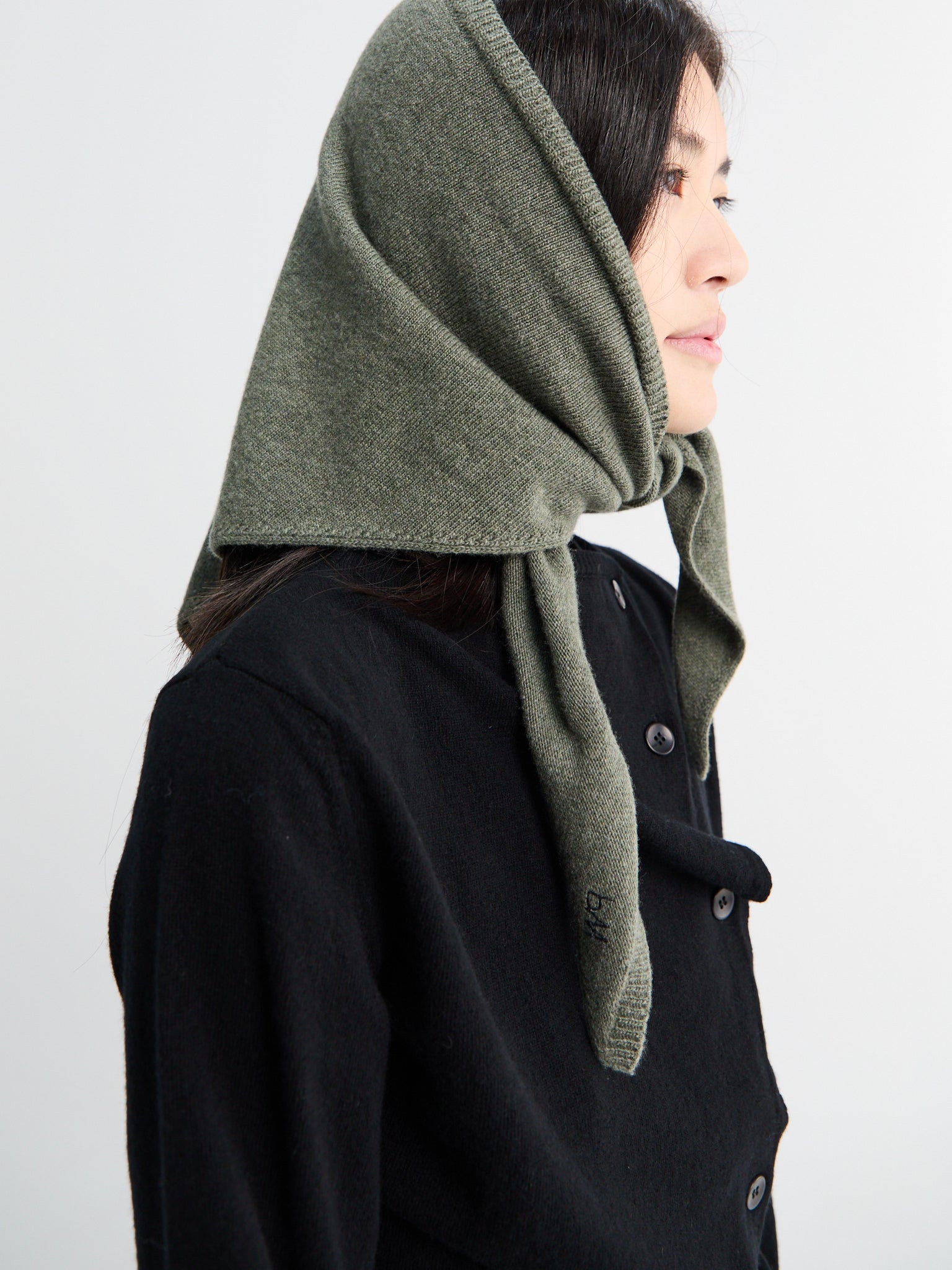 The Prima in Khaki is a soft and warm wool triangle scarf designed to keep you cozy on chilly days. This scarf features delicate embroidery detail.