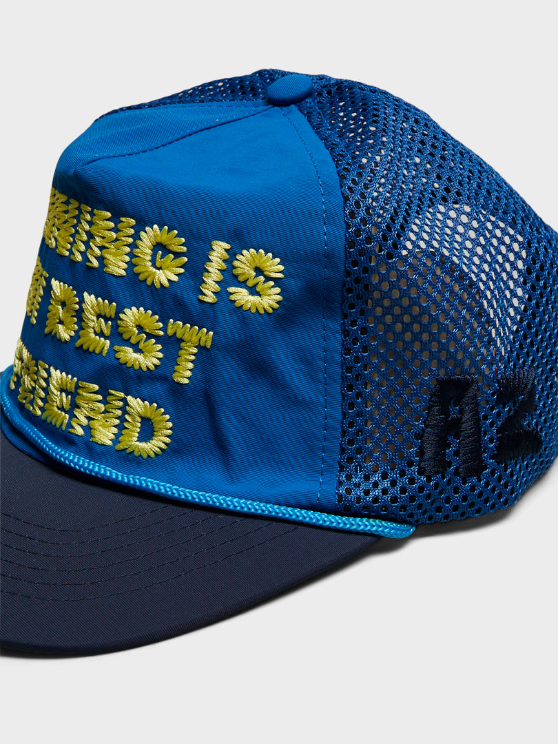 The back features a mesh lining with a moisture-wicking headband. An adjustable elastic pull cord ensures a comfortable fit. The side is detailed with Alex Zone embroidery.