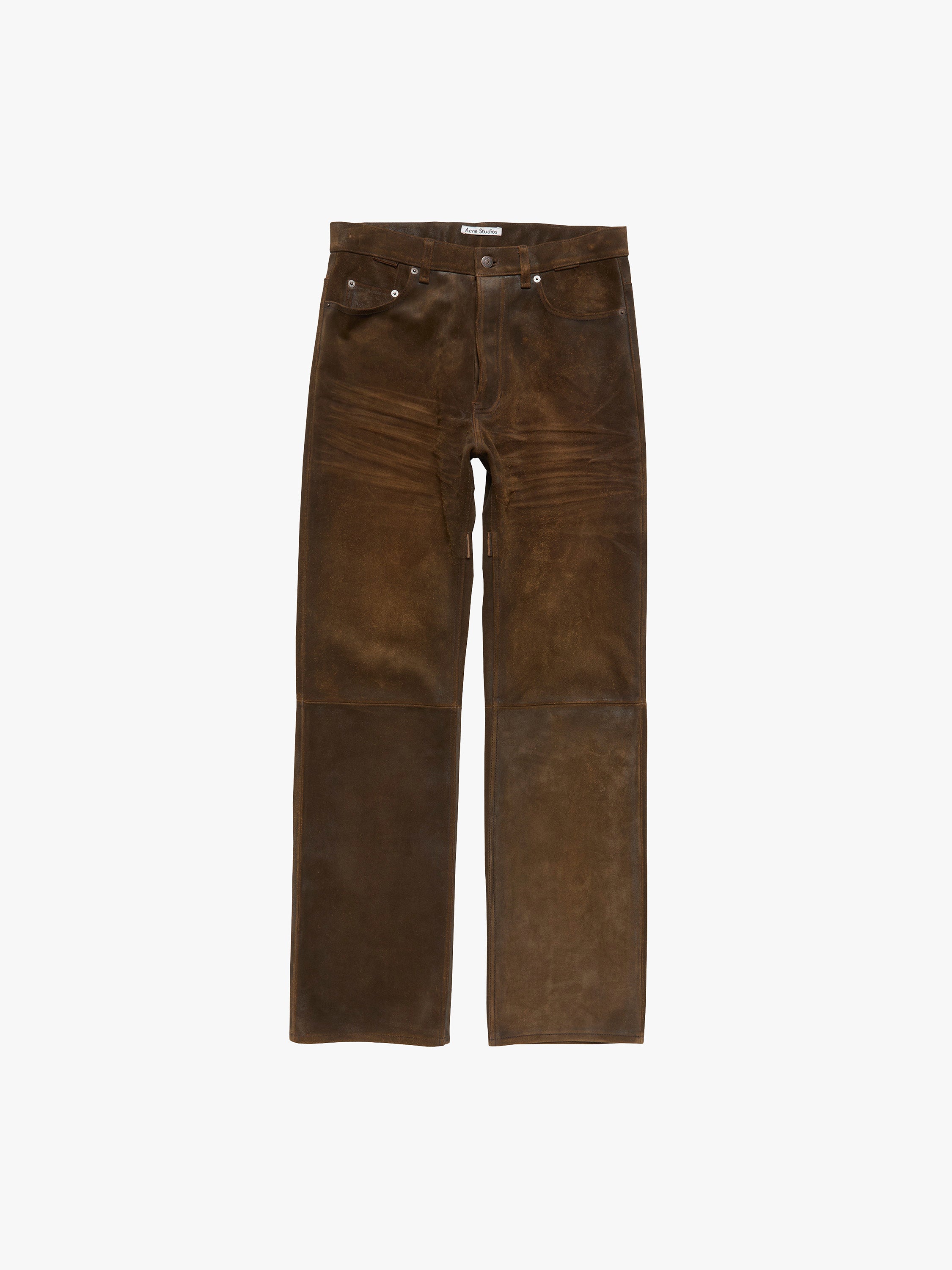 These high-waisted trousers are cut for a relaxed, straight-leg fit from a structured material in deep coffee brown. The design features front pleats that create a clean line through the leg and is finished with a classic zip fly.