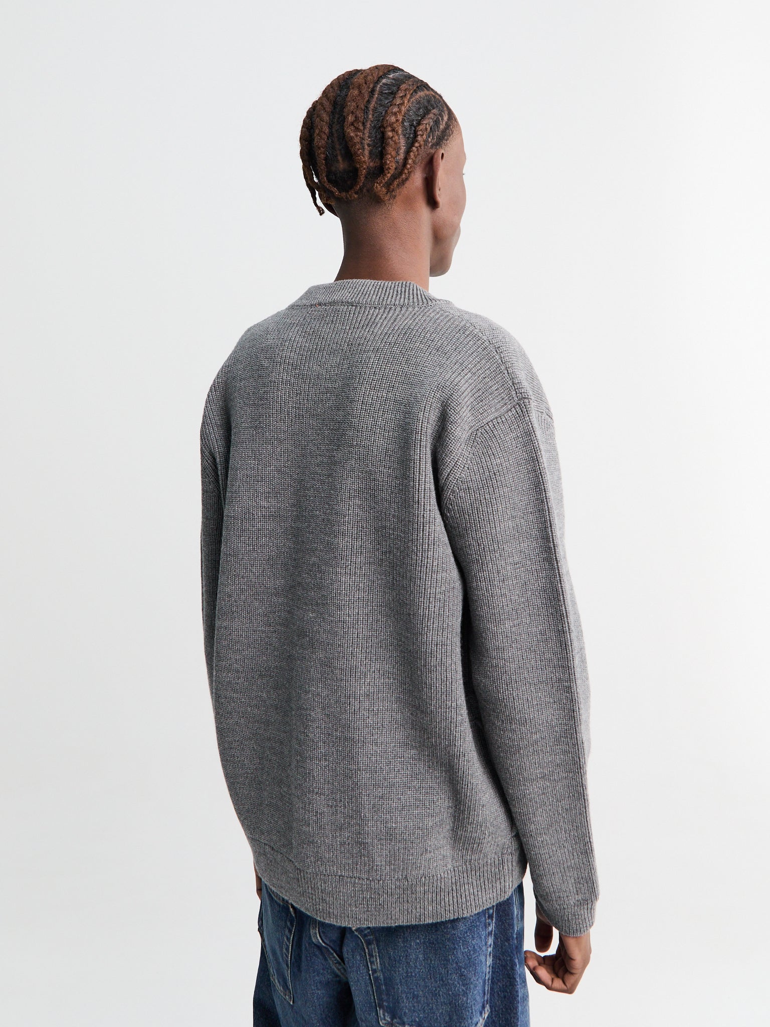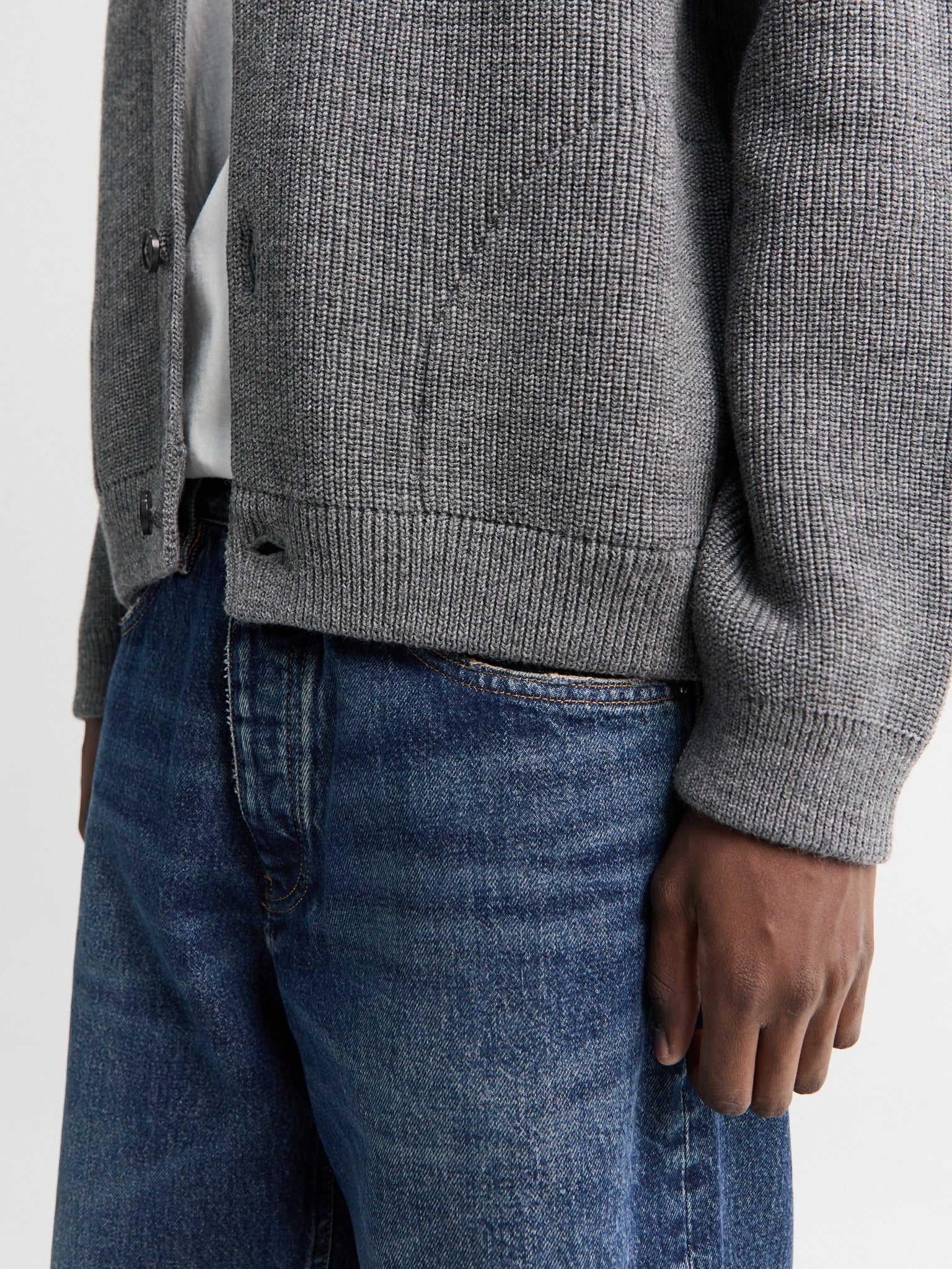 Crafted from 100% new merino wool, this heavyweight knit cardigan is informed by Danish naval traditions. A full-cardigan stitch creates a dense and resilient fabric, while the symmetrical design features a high collar and a robust two-way zipper. The piece is cut for a regular, straight fit.
