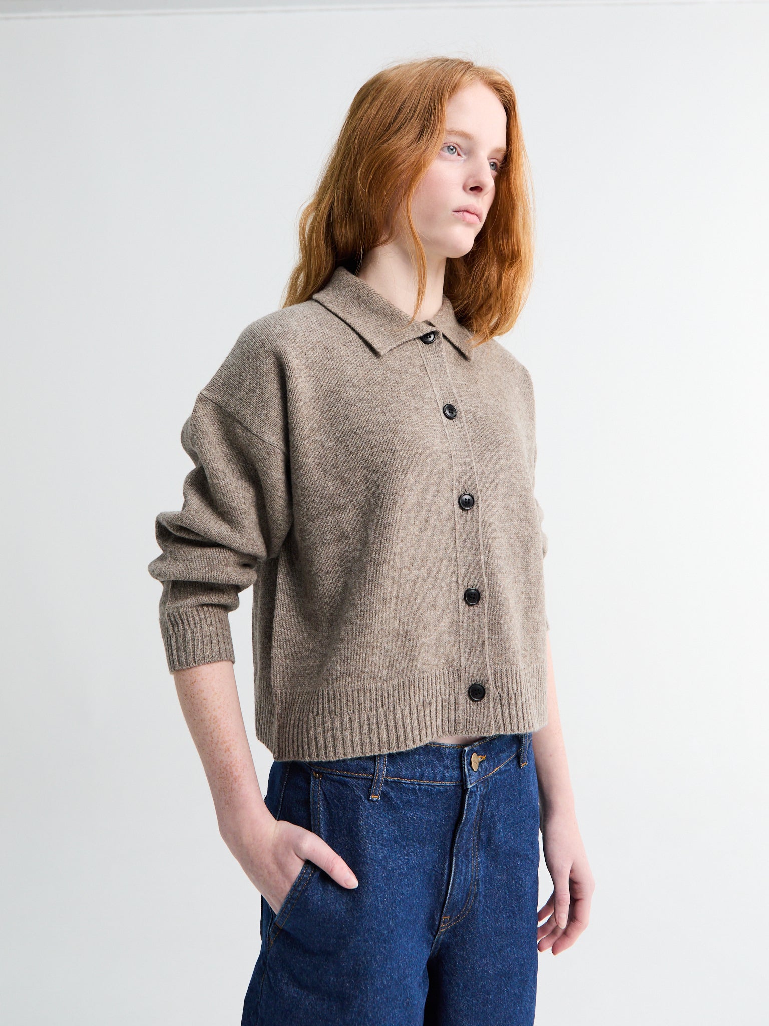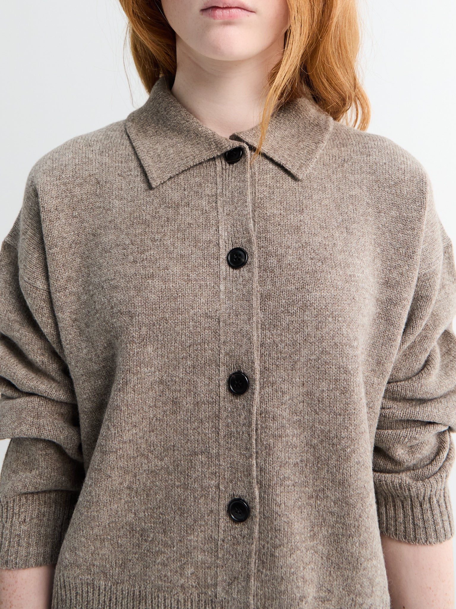 The Sunil Cardigan is made from llama wool with a fine-gauge knit. It has a straight silhouette, button-front closure, and ribbed detailing at the cuffs and hem.