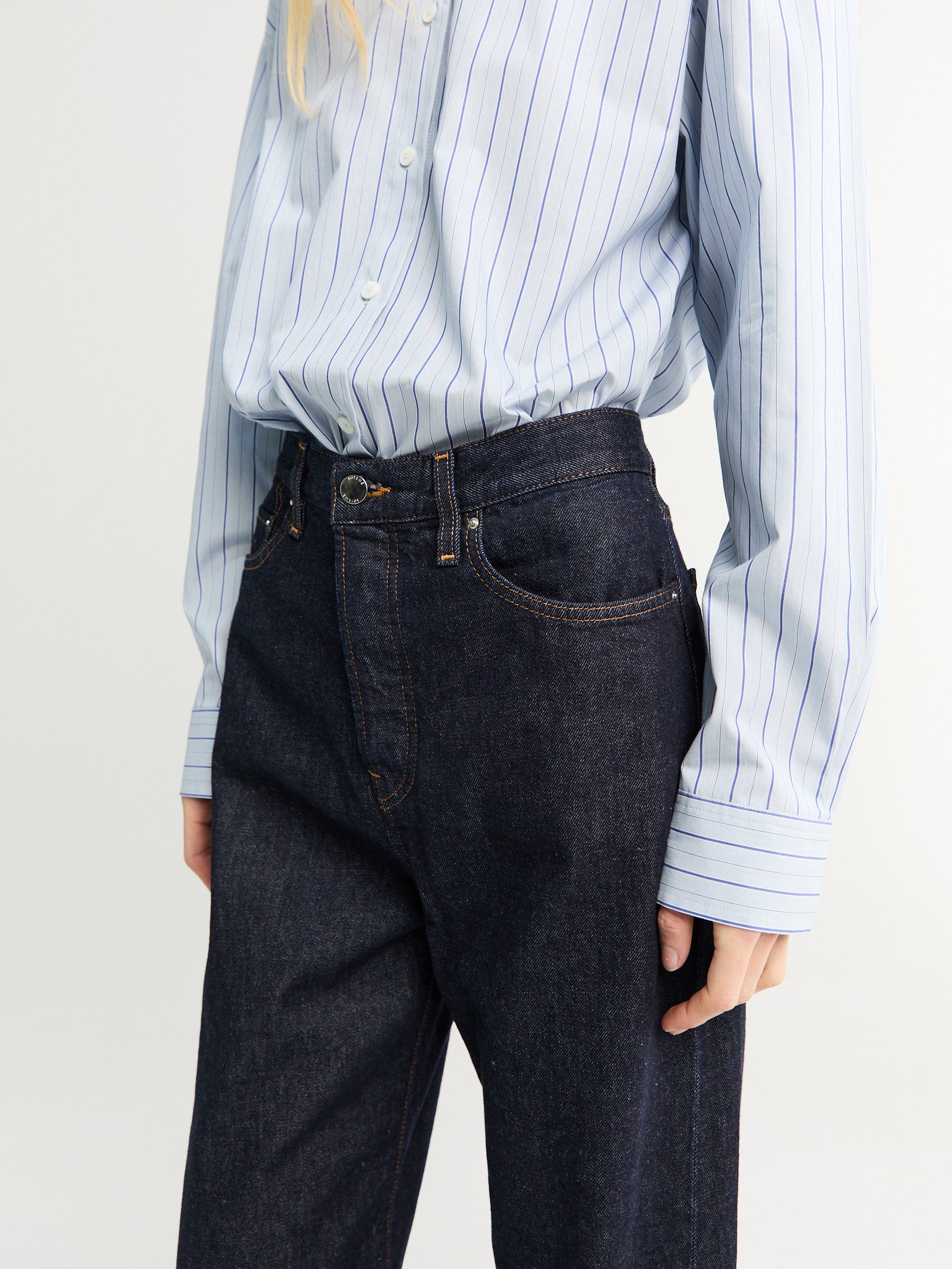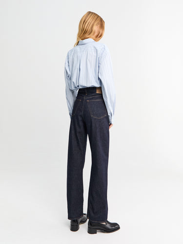 Twisted Seam Denim Full Length Jeans in Rinsed Blue