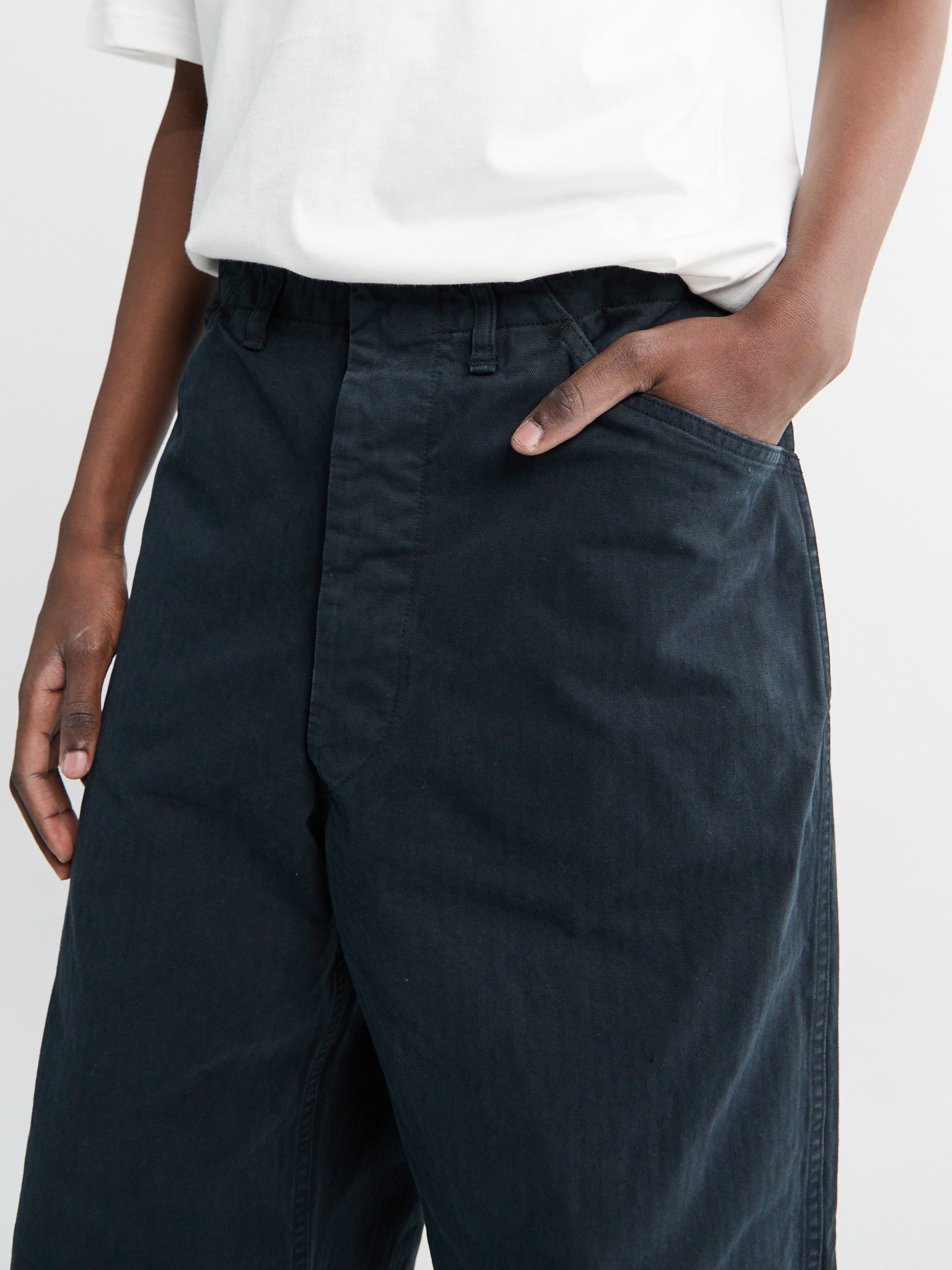 These utility trousers are orSlow’s interpretation of a classic USMC style, cut from a substantial black herringbone twill. The design features a relaxed, straight-leg silhouette with large front patch pockets and two button-flap pockets at the rear. Made in Japan.